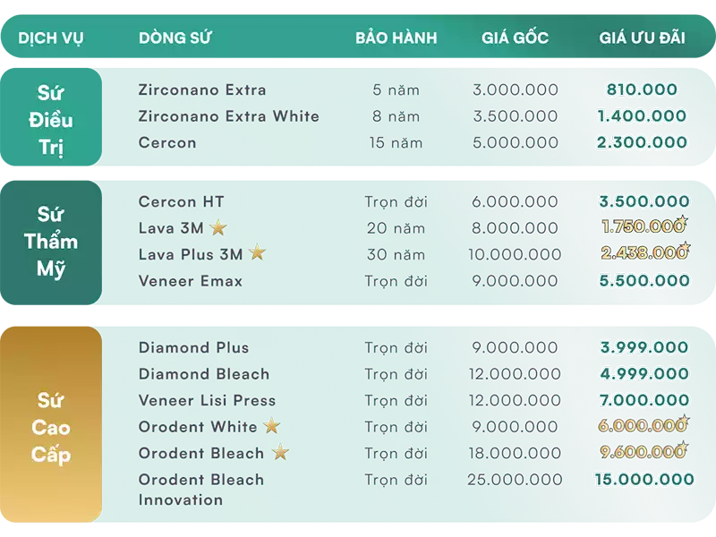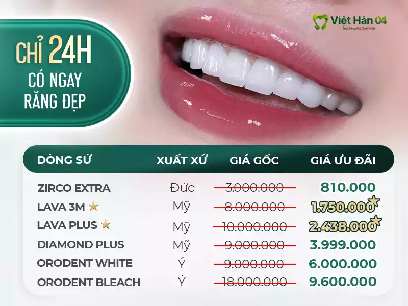 - Combo 16 răng toàn sứ chính hãng ưu đãi lên đến 70%