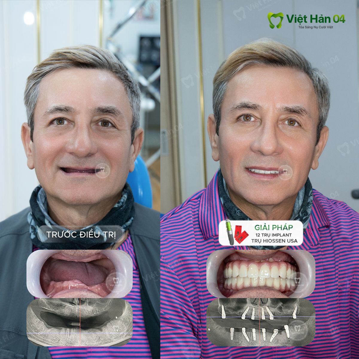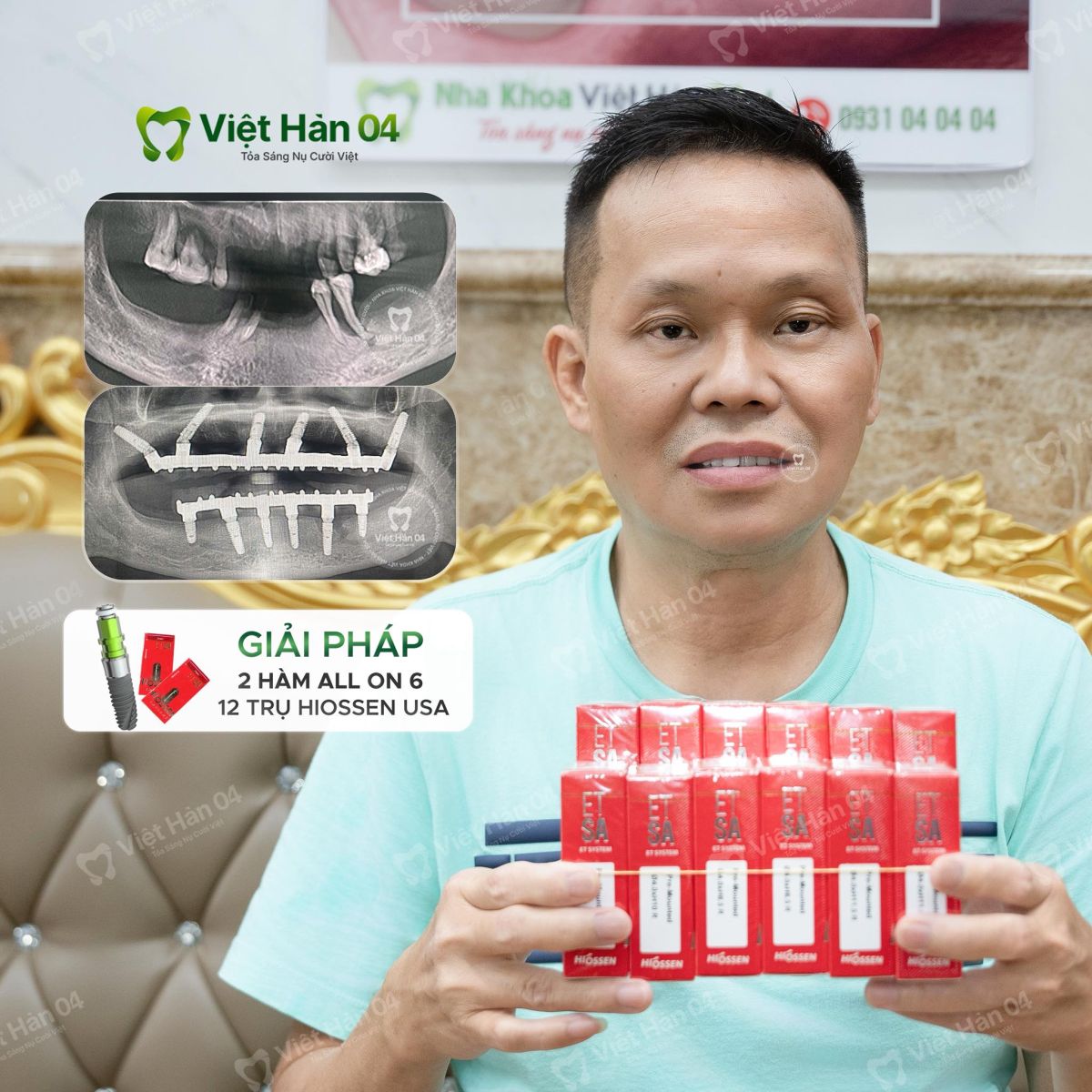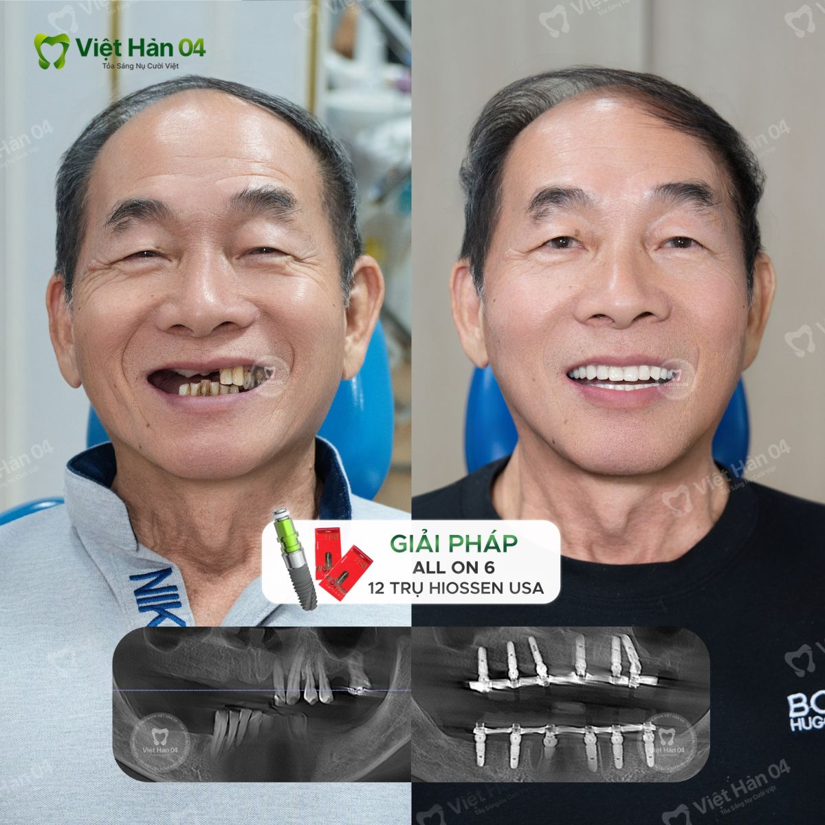 - Giải pháp: Implant toàn hàm All-on-6 với 12 trụ Hiossen.