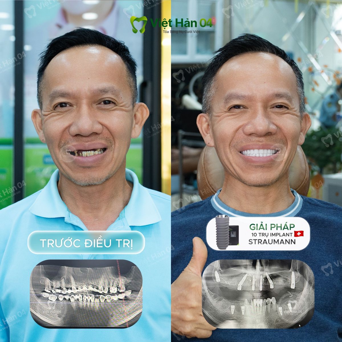 - Giải pháp: Cấy ghép 10 trụ implant Straumann