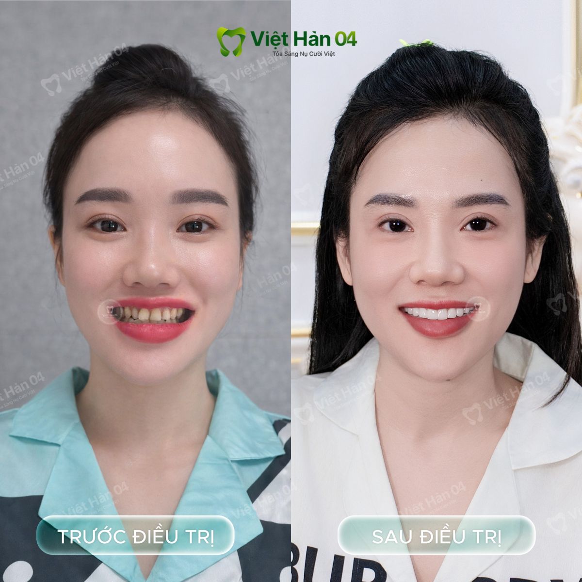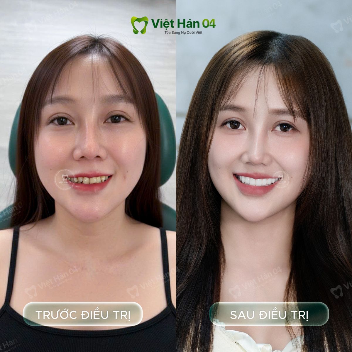 - Tình trạng: Sứ nano xuống cấp, răng cửa nghiêng nhẹ