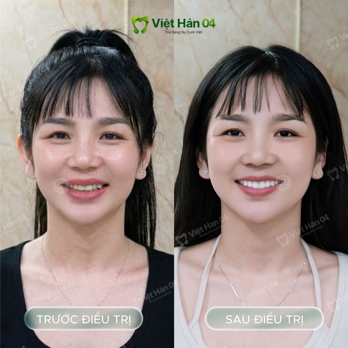 - Tình trạng: Răng ố vàng, form răng ngắn, viêm nướu nhẹ