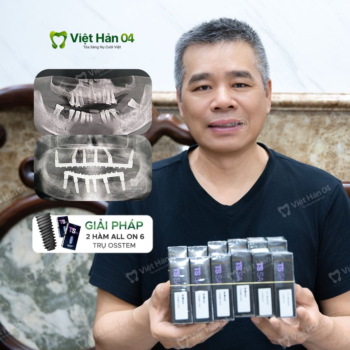 - Giải pháp: Implant toàn hàm All-on-6 với 12 trụ Osstem.