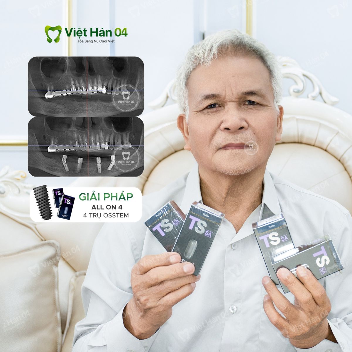 - Giải pháp: Implant toàn hàm All-On-4 với 4 trụ implant Osstem.