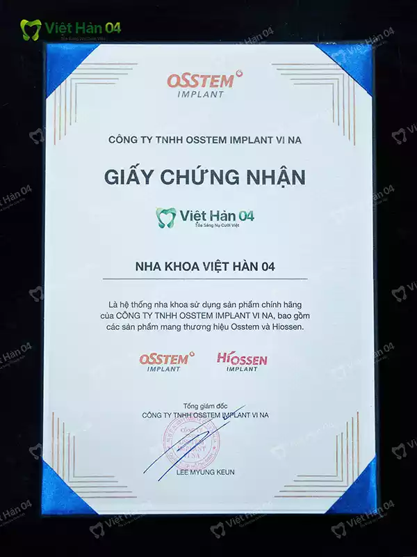 Nhân dịp này, đại diện hãng Osstem cũng đã trao Chứng nhận Nha khoa Việt Hàn 04 là hệ thống nha khoa sử dụng sản phẩm chính hãng của Công ty Osstem Implant Vina, bao gồm các sản phẩm màn thương hiệu Osstem và Hiossen.