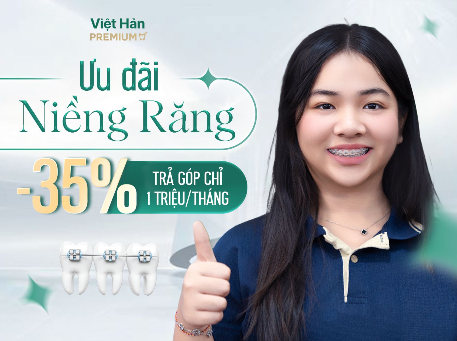 An tâm niềng răng tại nha khoa Việt Hàn Premium Bình Dương, răng đều đẹp chỉ sau 6 tháng cùng loạt ưu đãi vô cùng hấp dẫn: